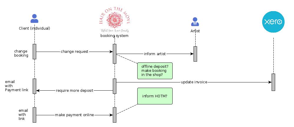 Client may book a service online, and s/he may be advised to change their service on the spot, so their booking information might be changed after they consulted with HOTM.