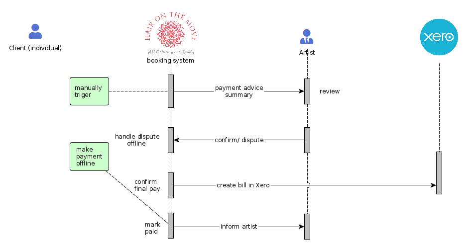 A minimum payment advice is done by sending emails to HOTM, in that case, HOTM will have no way to change anything, and system will not be able to track it. XERO bills will be created by booking system, but finalized by HOTM manually, if there are changes.